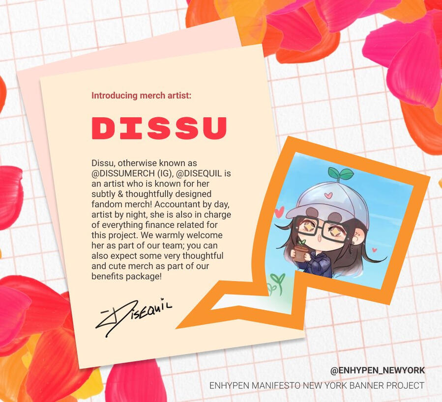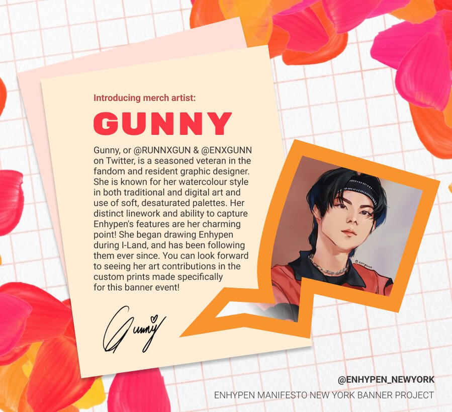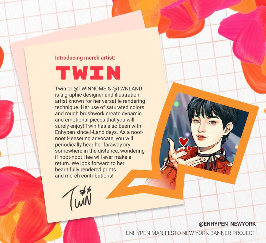 Hi! We are a group of ENGENE who are also fan artists! We’ve been following ENHYPEN ever since I-LAND days and want to do a super memorable project as a group as a thank you for all they have done for us! As a collective, we’ve done several large-scale projects for other groups and all have professional experience in graphic design, finance, business administration & illustration!In 2021, created a banner project for all Engene attending the NYC stop as well as a Heeseung birthday project outside the venue!Please follow us on our social media accounts for updates!