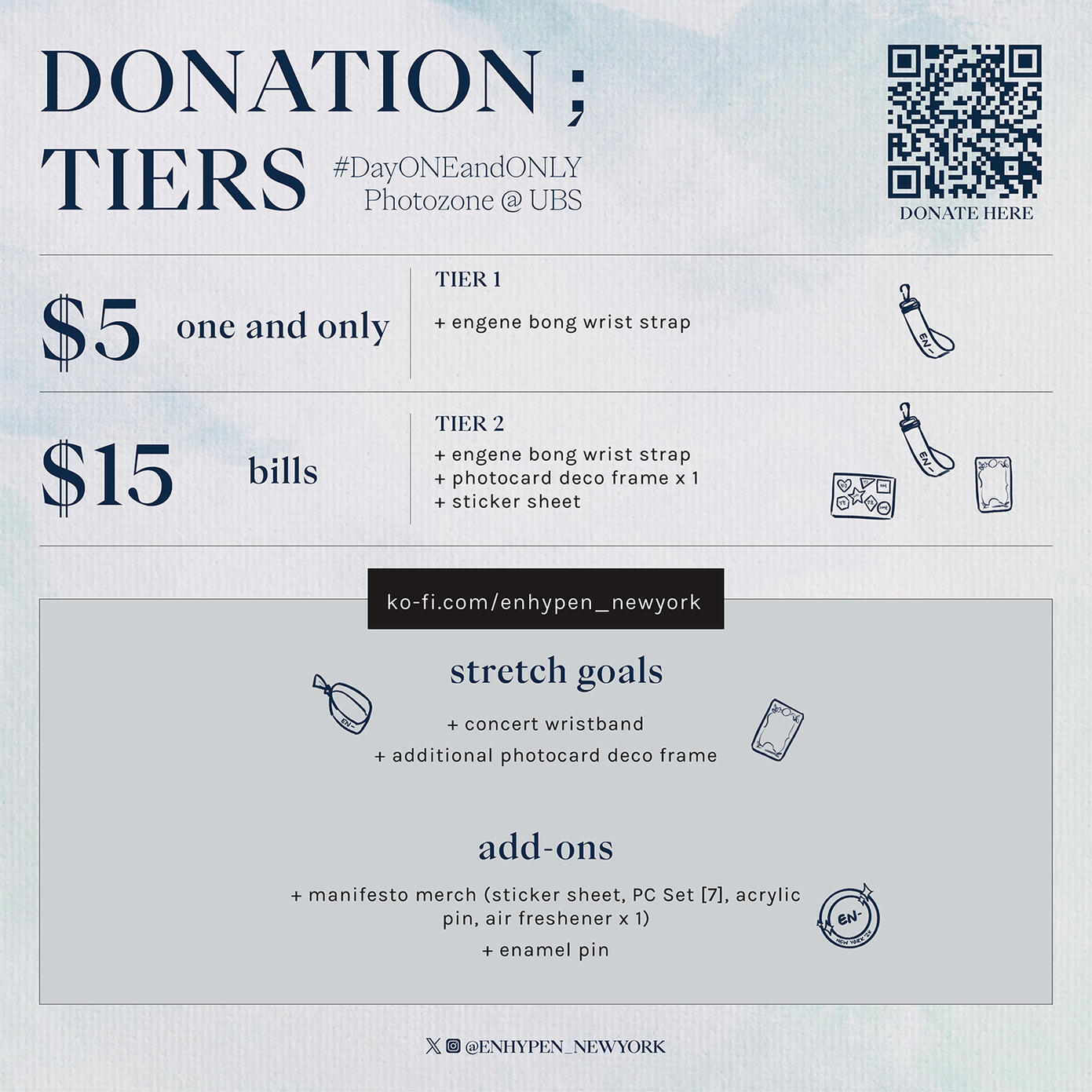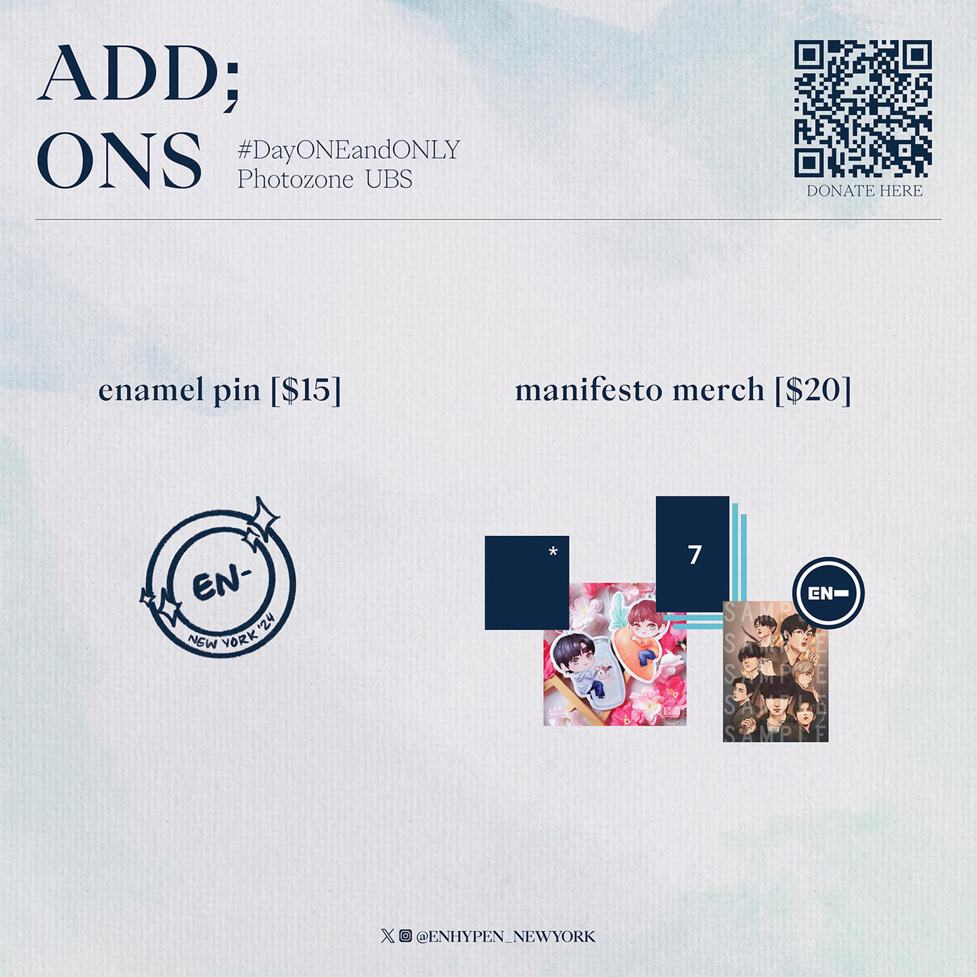 Hello! We are a NYC fan project team for ENHA! We organize fan projects for Enhypen concerts in New York! Please follow us on IG & Twitter for all current project updates!Our past projects include the #NYHeeDay photozone & #ENHYPENOurDayOne banner project for Manifesto in NYC 10/15CURRENT PROJECT: Fate+ AT UBS: #DayONEandONLY ENGENE PHOTOZONE.As this is a fan funded event, if you would like to help support us fund the photozone. We have two options below.- If you would like to pick up at the venue (Please note venue pick up must be BEFORE 2:30 PM on the day of the concert) please donate to our KO-FI account. (& Fill out our google form afterwards)- If you would like your merch shipped, please visit the link to buy and have our merch shipped to you directly! (All profits will still go towards the fan project) We're waiting for one more merch item to arrive before the tier listings go live. But all add-ons & previous project merch can be viewed! :)